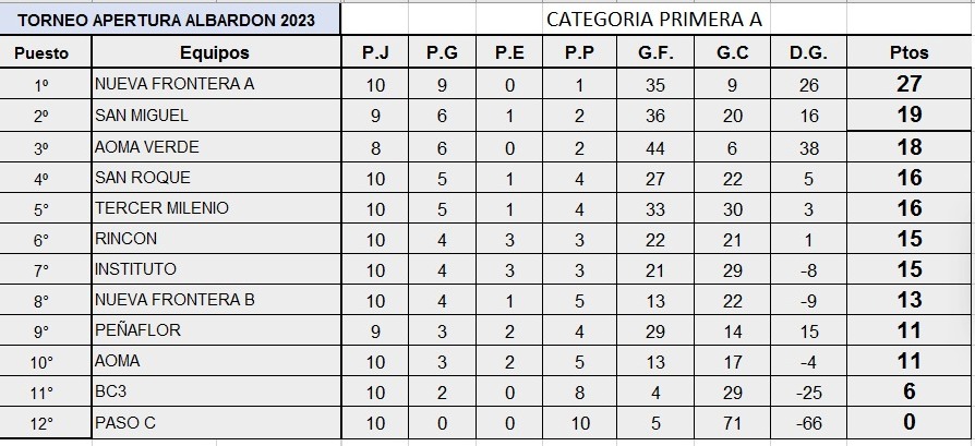 Las Clemenetinas por diferencia de gol marchan primeras