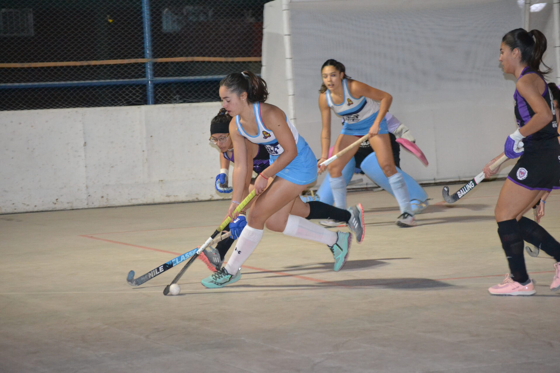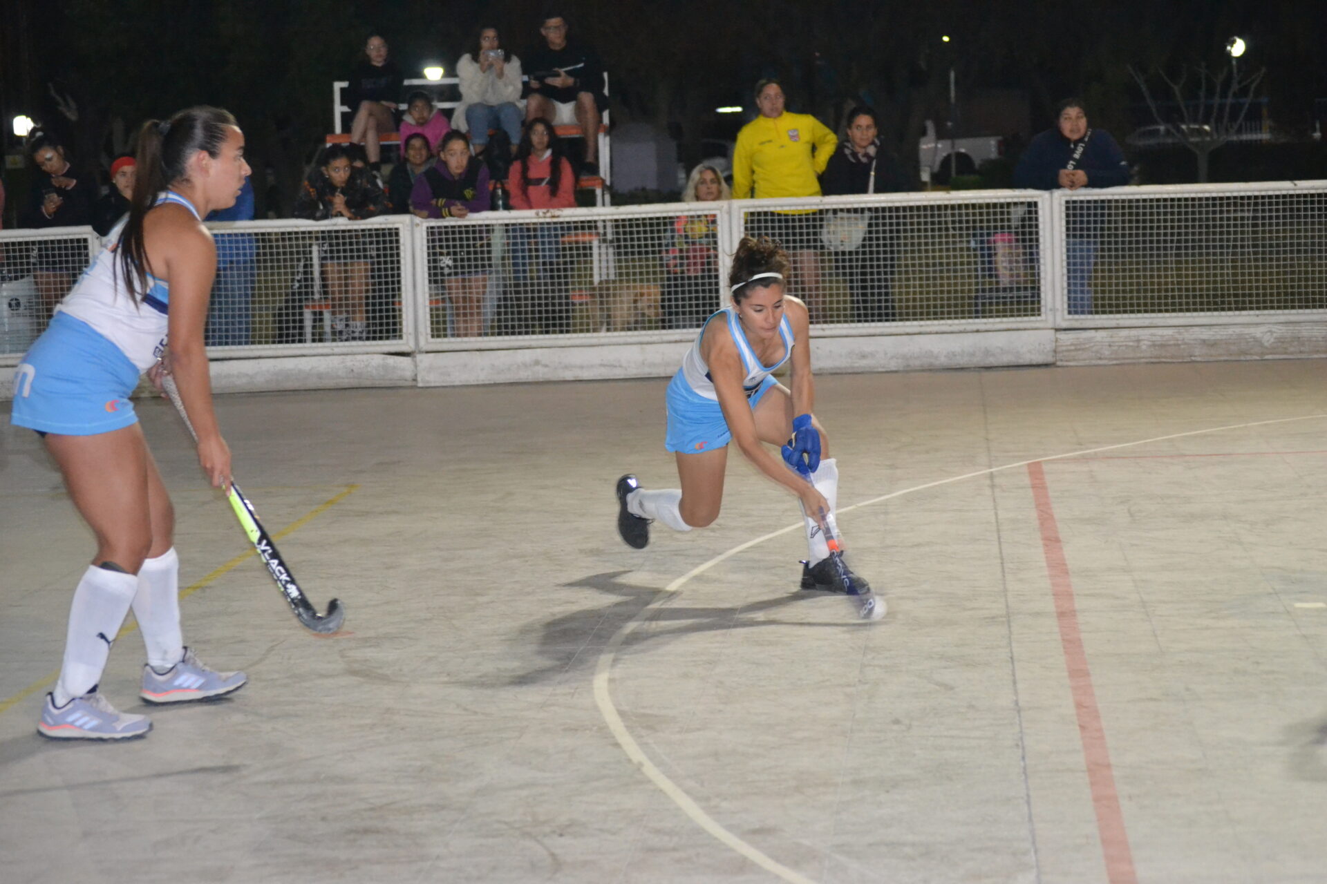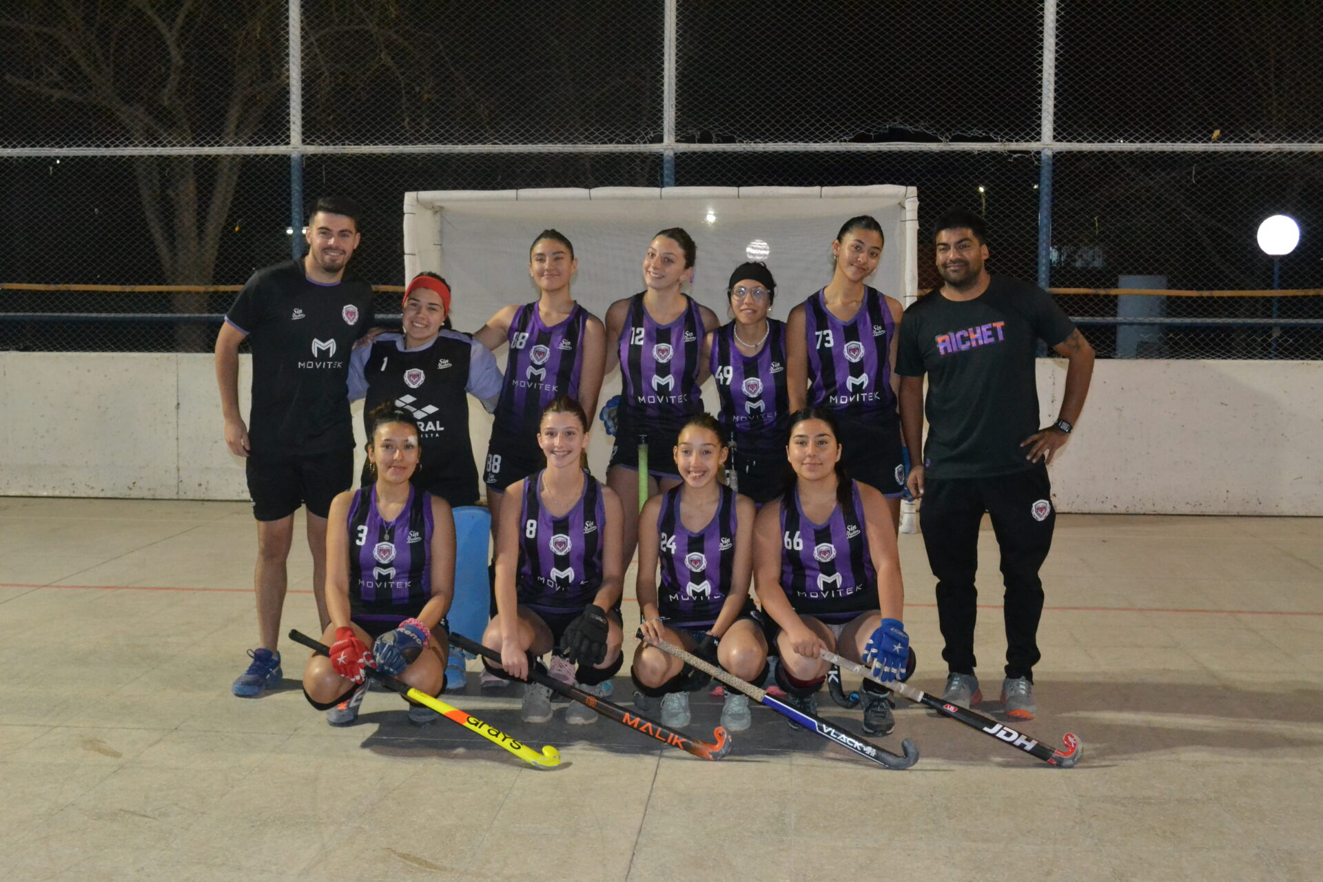 La cancha de Richet y Zapata estuvo muy bien preparada para la fecha de hockey pista que, este miércoles, se disputó en el Camping de Santa Lucía. Los arcos pintados, las redes nuevas, la demarcación de las zonas en la cancha, un espectáculo, todo preparado para el primer encuentro entre Richet y Zapata y Universidad por categoría Sub 19.
