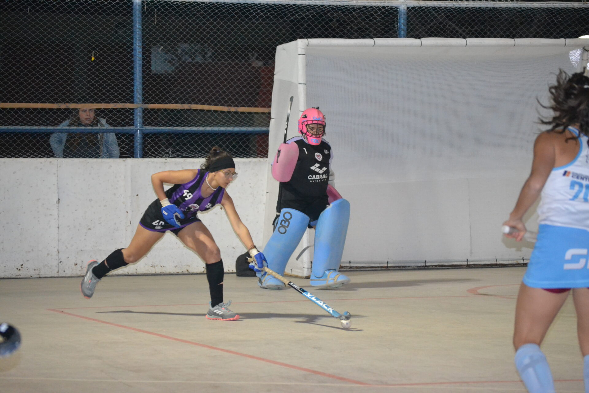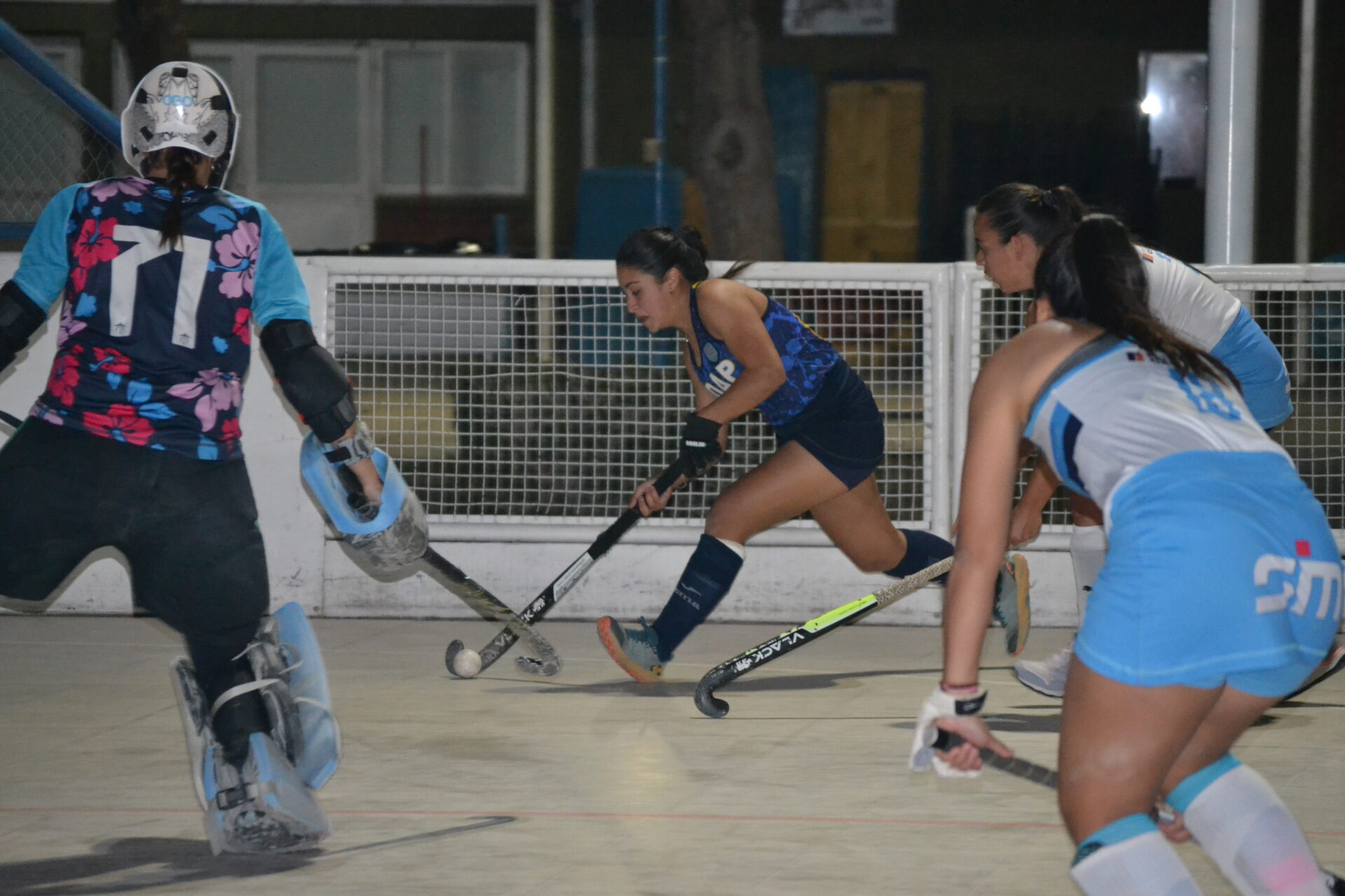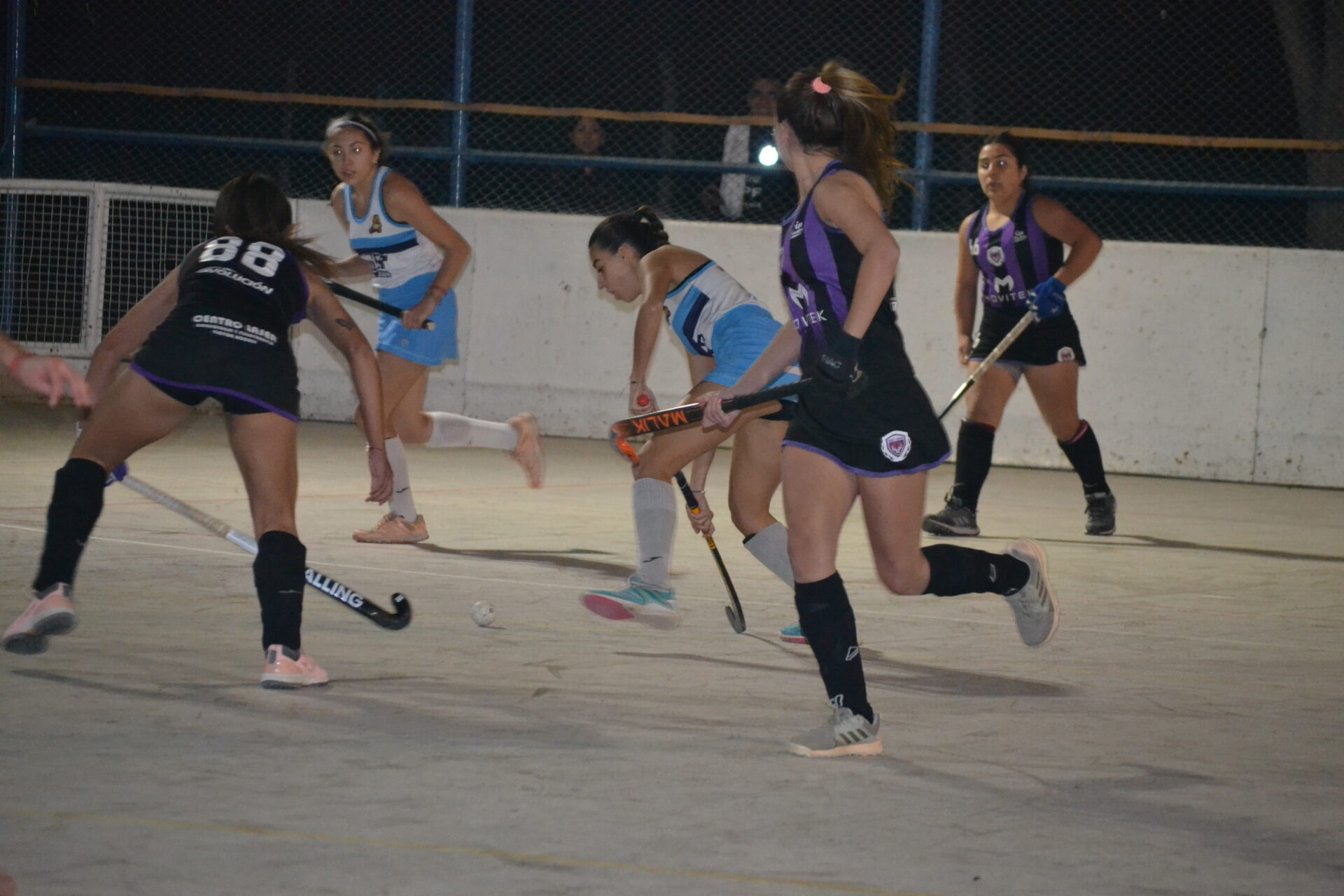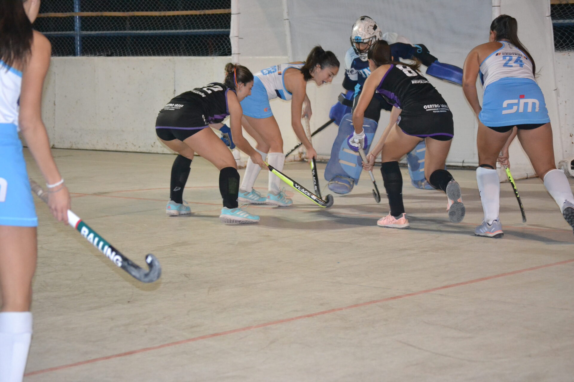 La cancha de Richet y Zapata estuvo muy bien preparada para la fecha de hockey pista que, este miércoles, se disputó en el Camping de Santa Lucía. Los arcos pintados, las redes nuevas, la demarcación de las zonas en la cancha, un espectáculo, todo preparado para el primer encuentro entre Richet y Zapata y Universidad por categoría Sub 19.