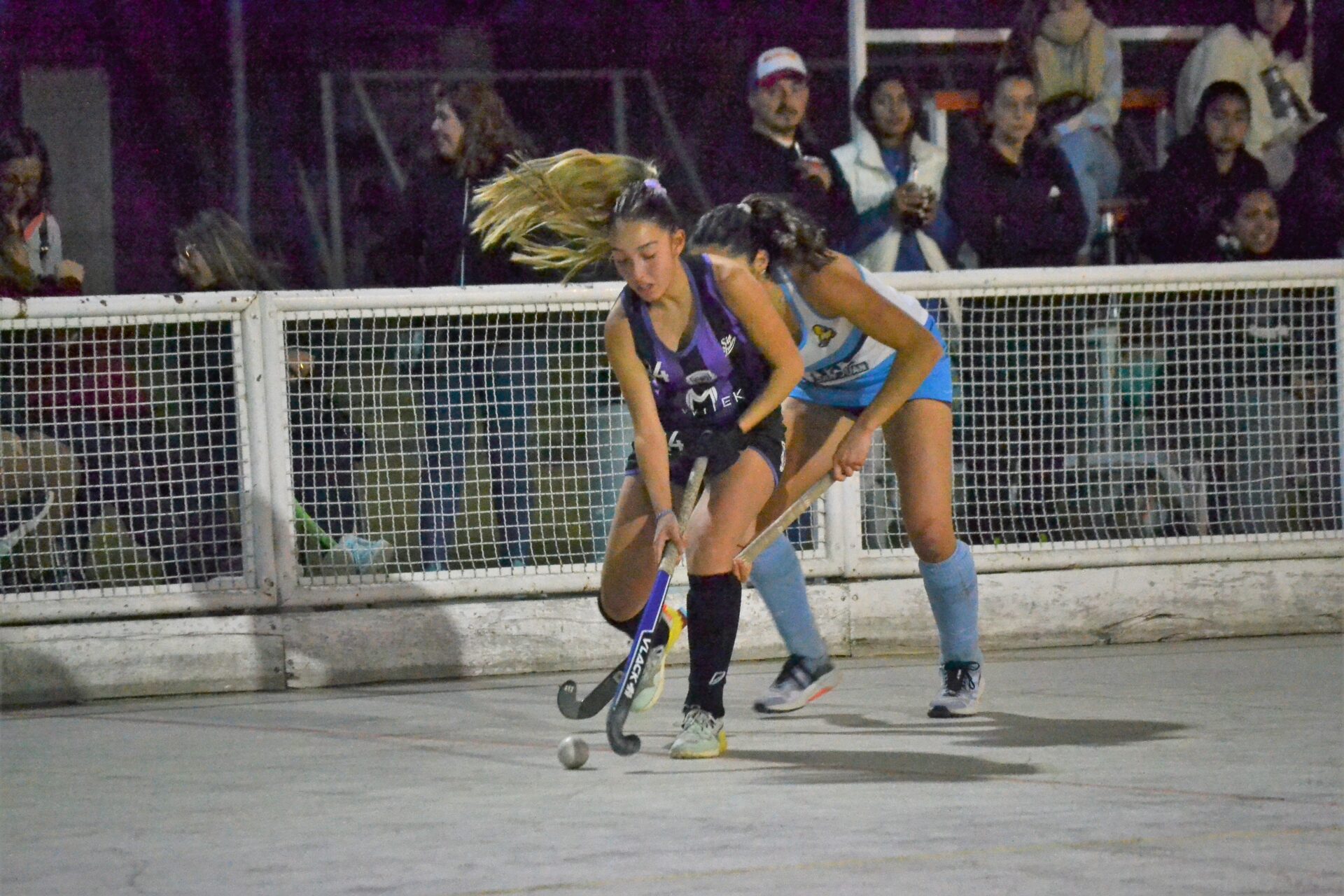 Ese partido estuvo bueno entre Violetas y Patitas.  A los nueve minutos Pilar Cuellar inauguró  el resultado para las turquesas, el buen juego de las locales no impidió que a los 13 minutos llegue el segundo gol de las universitarias y la que festejó fue Milagros Chancay. Richet manejó bien la pelota y unos minutos después llegó un corto a su favor y Jesica Silva encontró el gol.El partido no perdió ritmo, hubo muchas situaciones que hicieron trabajar a Milagros Russo, el pase del año que dejó el San Juan RC para sumarse a las filas Patitas, que tapó muchas bochas en su primer incursión en hockey pista. Lo mismo en el segundo tiempo le tocó a Milagros Gutierrez que tapó todo. Las chicas de Universidad lograron estirar la diferencia con el gol de Ludmila Tadini que cerró la historia y Universidad se llevó los puntos de la primera fecha en sub 19.
