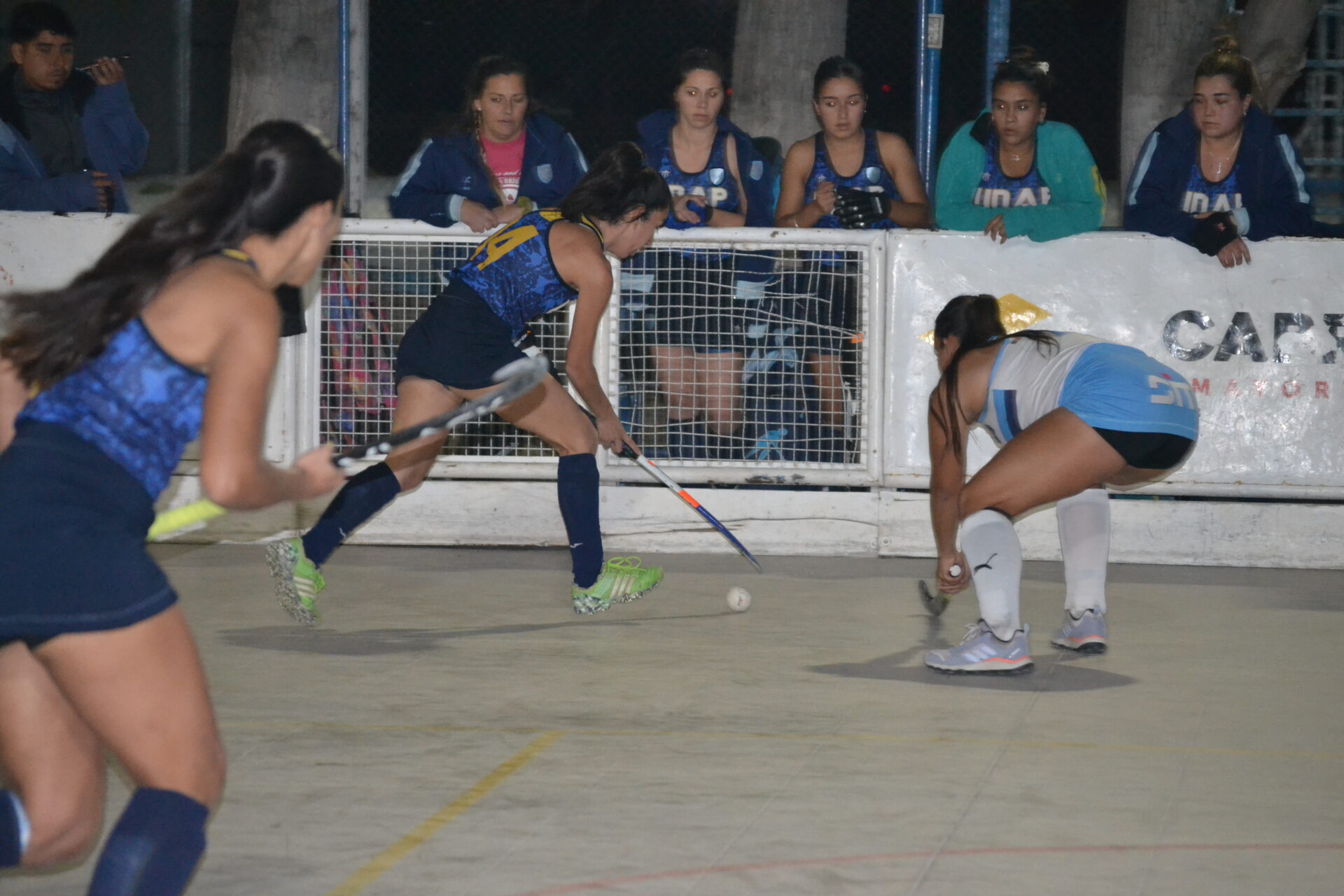 En el segundo partido saltaron a la pista las chicas de Primera División. Universidad (3) y UDAP (2) se vieron las caras. Las dirigidas por Ariel  Mairata mostraron un gran nivel, con Julieta Luna ex Leona de hockey Indoor en sus filas, supo manejar cada movimiento de su equipo en el reducto Violeta. UDAP por su parte mostró movimientos interesantes y comandados por Lia Busatto desde atrás aprovechó la velocidad de Gisella Rojas y llevaron peligro al arco de Russo y Gutierrez que atajó en el segundo tiempo, además el trabajo de Oriana Perussi que también tuvo un buen partido. Pero la efectividad de Universidad hizo de las suyas.